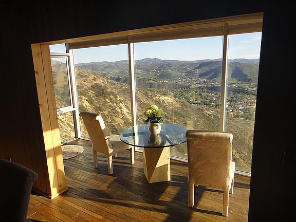 This home is on almost 7 acres and designed to take advantage of the views of the Santa Rosa Valley, Santa Monica Mountains and channel Islands with 3 enclosed balconies. Has 4 fireplaces, laundry shoot, 2 water heaters and 2 central AC/heating units and 2 skylights. Central Vac and Motorized front gate. Since these pics a 36 panel solar energy system has been added to the hillside limiting the electric bill to a few hundred dollars a year. 5 automatic shutters have been added to the Valley side windows to help cool the home. New black with gold diamond carpeting and window treatments as well as a new pebble surfaced pool and tile have been added. Bonus Mother in law unit with full bath and sink hookups. When calling please leave a message.