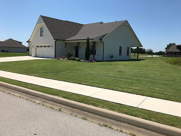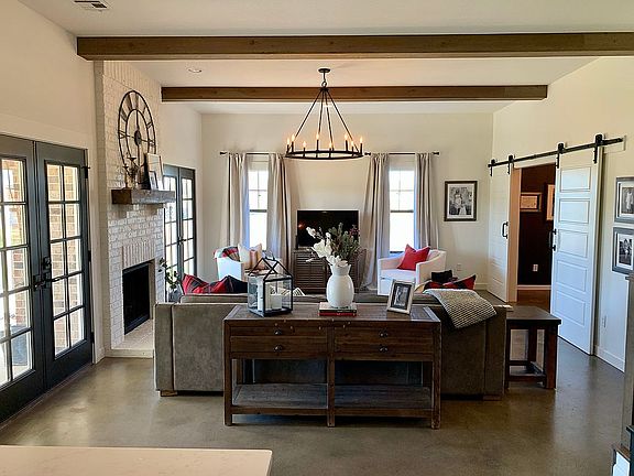 MODERN FARMHOUSE located on private golf course for the neighborhood residents only. Custom build. On trend colors, high-end lighting, hardware and cabinet hardware from Restoration Hardware. Extensive trim throughout. Custom tinted concrete flooring. Farm-style sink in kitchen, large quartz counter top island, SS appliances. Beamed ceiling in living rm. Sliding barn doors leads to private office. Elegant master has an en suite with deep soaking tub and large walk-in tiled shower. 3-car oversized garage.