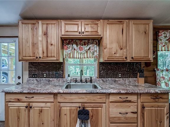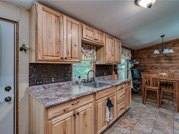 This lovely 3 bedroom, 2 full bath ranch style manufactured home is nestled nicely off the road in a private wooded lot and features shiplap accents throughout. As you walk through the covered front porch, you will see a sunken hot top. Through the front door is the kitchen/dining room combo. The cozy country kitchen has a glass top range, stainless appliances and plenty of cupboard space. Off the dining area to the left is an on-suite with a large closet and private bathroom. As you walk through the living room at the opposite end of the home, there are two bedrooms with a common full bath. In the side yard there is a large storage building. If you are looking for a quiet, peaceful private place to call home, you just found it! Call for a showing today.