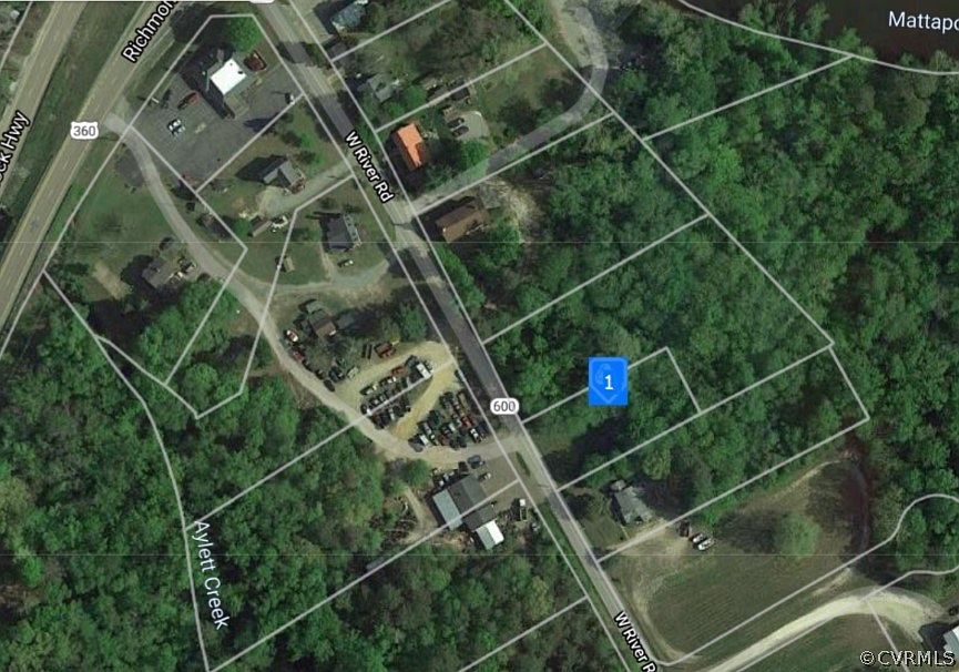 Lot near Mattaponi Public Boat Landing. There are a couple of tear down buildings on the property so water and sewer may be there. The tax file states one acre but the measurements on the GIS mapping data show one half acre. Will need buyer survey to confirm.