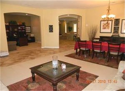 Situated on an Oversized Interior N/S Lot with Upgraded Stone Elevation, Huge Single Level w/ 5 Bedrooms + Den(w/closet)/ 3 Full Baths, Split Floor Plan w/Sep. Living, Family, & Formal Dining Rooms, 10Ft Ceilings, 4'' Baseboards, Accent Paint, Lots of 18'' Tile & Upgraded Carpet/Pad, 2'' Wood Blinds, Eat-In Kitchen w/Island/Breakfast Bar, Granite Slab Counters with Tumbled Travertine Backsplash, Stainless Steel Appliances Incl. Double Ovens & Glass Cook Top, Walk-In Pantry, Lots of Cabinet Space, Soft Water Loop, Media Niche in Family Room, Add'l Cabs & Counter in Laundry Room, Huge Master Suite w/Bay Window, Structured On Q Wiring, Covered Patio w/ Fan Pre-Wire, Pavered Walkway & Sitting Area & Grassy Area in Backyard, Custom Garage Cabs, Bench, & Epoxy Coated Floors, Alarm