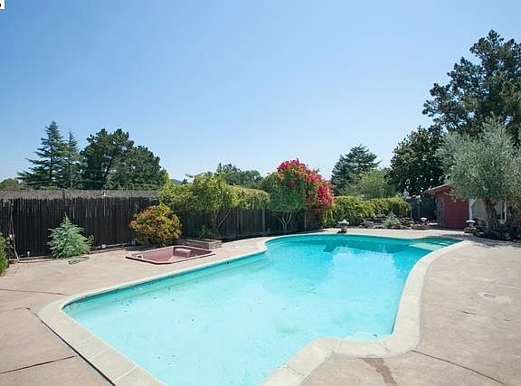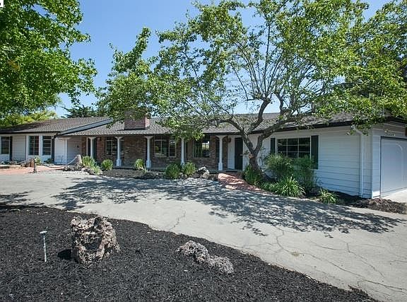 Spacious Rancher on 0.43 Acre level lot with views and pool. Great outdoor entertaining areas. Level home with vaulted beamed ceilings, freshly painted inside and out. New carpeting, lighting, gutters. Quiet street. Family room with bar. Dry sauna and bath outside by pool. Play areas..