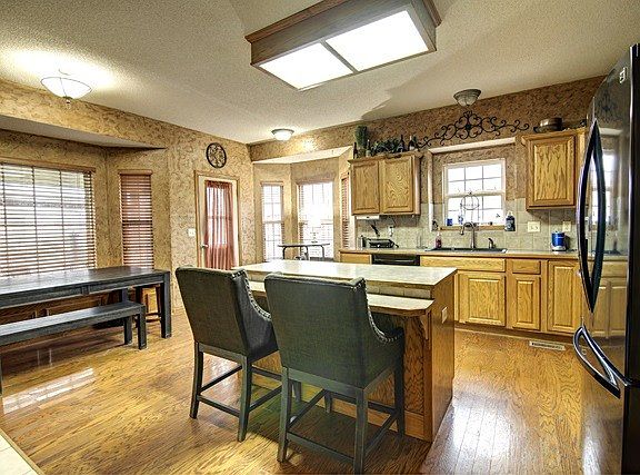 Well maintained home in Goddard School District! This 5 BR 3 BA 2 Car Garage is located on a corner cul-de-sac lot. The large living room offers gas fireplace with built-in shelving and adjacent formal dining area. You wonât be disappointed in the oversized kitchen with large island and eating bar, pantry, newer appliances (within last 3 years), eating area with built-in seating and access to the deck. Desirable floor plan offers three bedrooms on main floor (cluster) including a large master suite with vaulted ceiling, walkâ"in closet, and master bath complete with two sinks and tub/shower. The hall bath and main floor laundry round out the first floor. The finished daylight basement offers a large family room, an area where a bar may be added, two bedrooms, third full bath and an additional finished room. The basement bedrooms both include walk-in closets. You will be amazed at the space in this basement, as well as the storage available. Outdoor entertaining will be a breeze with the covered deck and separate patio area. The backyard offers a wood privacy fence and sprinkler system. Updates include a/c (2015), roof (2014), exterior paint (2013), water heater, basement carpet (2013), and all kitchen appliances. This exceptional home in the Goddard School District is a must see for your list - call to schedule your private showing today!