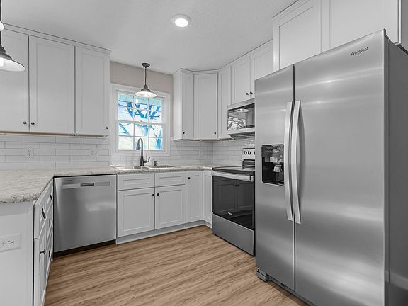 This amazing, turn-key ready, 3 bedroom, 2 bath, 2 car garage-rambler style home site on .44 acres and has been redone from floor to ceiling with new flooring, trim, doors and textured ceiling. With several new windows. Every room has been painted, new cabinets, counter tops and all new bathroom fixtures! It features a wrap around deck, fire pit in the back yard and 1 out building, a 12'X20' storage shed with a loft. The downstairs has an egress window for a 4th bedroom if needed. It is also stubbed in for a full wet bar. It has 2 family rooms and 2 unfinished 10x10 rooms. The third unfinished room is for utilities and laundry. All the outside work has been completed. Newly painted trim and siding and some landscaping. Newly upgraded electrical service which meets current code. Includes proper ground fault, upgraded light fixtures and installed hardwired smoke detectors with battery backup. Welcome home!