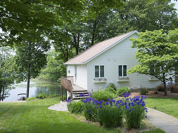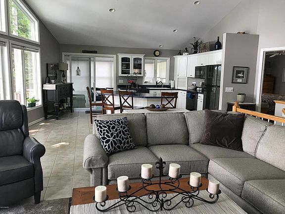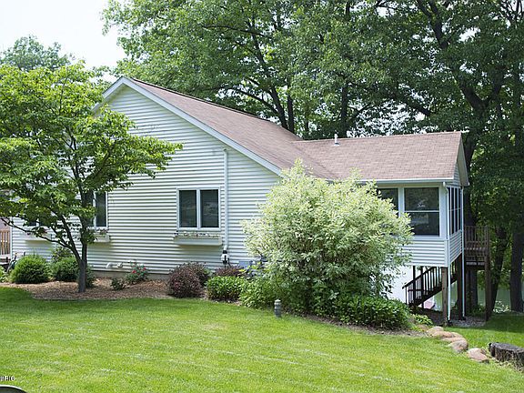 Georgous Pine Lake Home with new 3 stall garage with a bonus room & full upstairs. Nice open floor plan with wall to ceiling windows and new shades. Kitchen with large island, living room with gas fireplace. Ceramic flooring on main lever. A large Master Suite with walk in closet, new ceramic walk in shower and a slider to the deck. 1/2 bath & laundry all on Main Lever. Lower level offers Family room plus a kitchenette with glass doors that open to the patio area. Two additional bedrooms and a full bath finish off the lower level. Choose from the 3 season porch, patio or lake platform to enjoy the everyday change in scenery and wildlife. New roof & gutter treatments. New hot water heater, carpet and appliances. New tile in Master Bathroom. Custom blinds