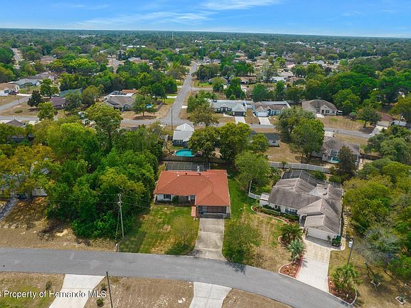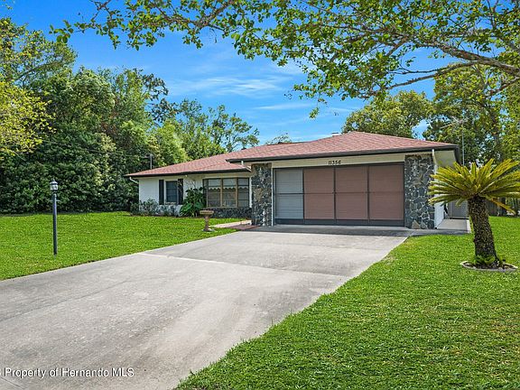 Active with contract accepting backups. Why would you look anywhere else when this adorable Spring Hill pool home is just waiting for you? Stone accents, garage screen sliders, and outdoor lighting enhance the curb appeal of this charming abode; it also boasts a new roof in 2019 and new AC in 2015. ''Home, sweet home'' is the vibe from the moment you step through the screened front door into the wide foyer. Vaulted ceilings add volume and a sense of spaciousness to the functional open floor plan. A large bay window illuminates the dining room, while the mirrored accent diffuses the natural light. Get into game night in the living room with a rousing hand of Exploding Kittens, or get comfy for a binge sesh of your favorite streaming show. On cooler evenings, snuggle up in front of the beautiful stone fireplace and enjoy the crackling sounds and soft flow of the golden flames. Whether you're putting together a quick snack or whipping up a multi-course feast, you'll love the super cute kitchen. It has plenty of cabinet and counter space for storage and prep, plus a breakfast bar and bright tile backsplash. When you're ready to retire for the evening, your master bedroom becomes a personal refuge. With private access to the pool area, it also has a large walk-in closet to stow your belongings. The ensuite master bathroom sports a unique feature dual sink vanity with a built-in makeup area and huge mirrors. It also has a big step-in shower with a grab handle. And not to worry - the rest of the family or your visitors can enjoy their rest in comfort as well in the sizable guest bedrooms. Don your swimsuit, grab your towels and some sunscreen, and head through dual glass sliders in the living room when you're ready to enjoy Florida living at its finest. Sip a cool umbrella drink from the shaded comfort of the lanai or catch some rays on the pool deck. When it's time to cool down, make a splash and jump on into the in-ground, screen-enclosed pool! You won't have to worry about any HOA fees or restrictions here in this peaceful neighborhood. Centrally located in the heart of Spring Hill, Rotary Centennial Dog Park and Veterans Memorial Park with its popular lighted walking trail are only minutes away, as is the Hernando County YMCA. Check out the world famous mermaids or the water slides at Weeki Wachee Springs State Park, which is less than 6 miles away. Popular swimming destinations like Rogers Park and Pine Island Beach are only a short trip northwest. And you're surrounding by lots of nearby shopping and dining options, including locally-owned favorites like Murphy's Market, Miguel's Latin Market, Donnelly's Deli, Cali Street Tacos, Nouvelle Cuisine, Papa Clyde's Two Ice Cream, Jam's Cafe, 787 House of Sugar, Caffe Connections, and more! The Suncoast Parkway/Veterans Expressway isn't far, so downtown Tampa and its amenities are easily accessible. This is not a home to sleep on, so be sure to schedule your viewing before it goes!