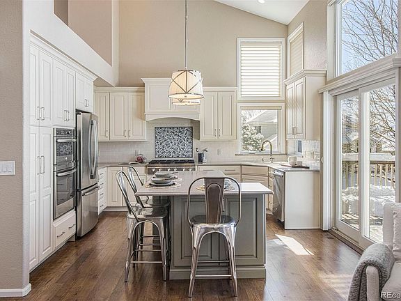 Welcome home to this beautifully updated 3 bedroom, 4 bathroom home. The open & bright main floor offers a cozy living room with vaulted ceilings, a formal dining with plantation shutters, spacious kitchen offers stainless steel appliances, a double oven which the top oven can be used as a microwave or convection, quartz counters, soft close drawers, and a kitchen island perfect for eating breakfast while overlooking mountain views. The cozy family room offers a gas fireplace to keep you warm during the Colorado winters and easy access to the large deck perfect for entertaining during our wonderful summer evenings complete with a gas grill. The main floor laundry comes with the washer & dryer as well as extra cabinets, shelves for storage and a utility sink. Enjoy your quiet time or work from home in the study complete with french doors. Enjoy your morning coffee on your private back deck before heading back in to begin your day. The upper level offers the primary suite with 5 piece bath and a beautiful bay window to let in extra light. 2 additional bedrooms and a full bathroom round out the second level. Head on down to the finished basement and enjoy movie night with family or friends in a 2nd family room or host game night in the game room area. There is plenty of built-in shelving to store all your games and books. The basement is complete with a 3/4 bathroom and a utility room with extra storage space. Freshly painted interior and exterior, new carpet, newer windows and doors, newer water heater, new remote window shades in the kitchen and family room, newer sump pump. This is a must see home that is conveniently located to restaurants and shopping and schools.