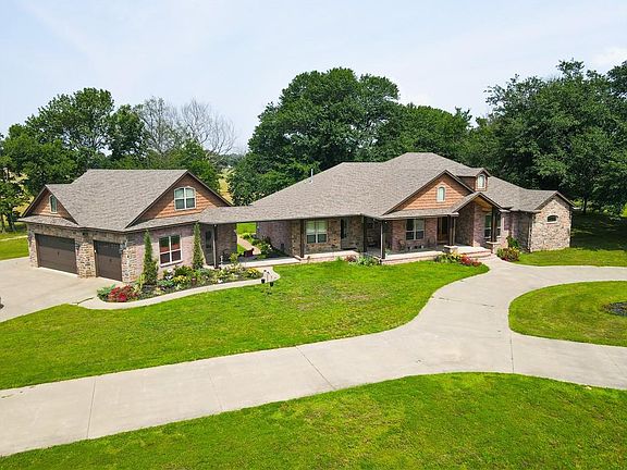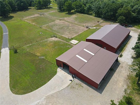 Stunning brick home features an enormous open kitchen with granite counter tops, stainless steel appliances. Two ovens, 6 burner gas stove with a pot filler. Built in ice machine and trash compactor, and walk-in pantry. Living room has a beautiful fireplace with floor to ceiling windows overlooking the back of the property. Floor to ceiling built in cabinets become the focal point of the room. Master suite has walkout to the back porch, an oversized walk-in closet with built in drawers and shelving. Master bath is equipped with an oversized walk-in shower 2 shower stations with multiple overhead showerheads,2 oversized vanities and a spa bath. Two other bedrooms share a bathroom with walk in shower, toilet and 2 separate vanities. The 4th bedroom above the 3-stall garage has a full bathroom, a windows overlooking the property, a great space for guests. The office looks out over the front of the property. The home has 2 tankless gas hot water heaters with 2 heating and air units to provide efficiency for cooling and heating. The huge covered back porch has 3 ceiling fans, a large front porch awakes to the morning sun. FREE GAS for the life of the property utilizes all gas appliances including the dryer and fireplace. 60 x 100 horse barn has 8 - 12 x 20 foaling stalls and 12 – 12 x 12 stalls, feed room, a 12 x 12 tack room with storage above. All stalls have glued down matts for easy cleaning. Two exhaust fans and 4 oversized ceiling mounted fans keep the air fresh and moving. Entire barn was spray foamed. A 40 x 70 shop has numerous shelving options, workbench, and a safe room. The overhead door has an opener. Attached to the shop is a 30 x 70 cemented lean, great for hay and equipment storage. Large circle driveway is cement and connects to the shop. Multiple hydrants throughout the property. Rural water and a drilled well that has not been hooked up. Seller is leaving all the furniture. More features too numerous to list. See supplements for additional inclusions.