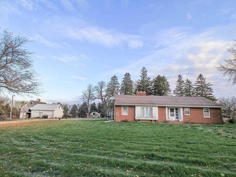 Enjoy the peace and quiet of Iowa's countryside! Up on a small hill, this acreage overlooks Little Cedar Creek. About a mile from Little Clear Lake, you can enjoy the many amenities Iowa life has to offer, all on your own 3 acres! This brick home needs a little bit of love, but offers 3 bedrooms upstairs along with a full ensuite. The other two bedrooms share a bathroom with shower. One bedroom has a door leading outside which would make a perfect office. Large living room, galley kitchen, and tons of storage everywhere. Basement laundry. Two car attached garage - no garage door currently. Small machine shed, corn crib, and a chicken coop.