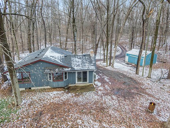 Private retreat within canopy of mature hardwood trees highlighting seclusion and serenity! All in this well maintained 3 BR home on 10+ acres with detached pole building. This is a must see property that starts at inconspicuous entry to home driveway in scenic Flowerfield Township, features rolling hills and terrain, yet just a few minutes from shopping and ease of access to US 131 or M-40. Basement level is open and ready for storage, finishing or workshop. Main level has two separate living rooms and bedrooms set on north side of home. Get early access to this home through the video and drone videos! Get ready for your personal walk-through after stay-at-home is lifted. What a great property!