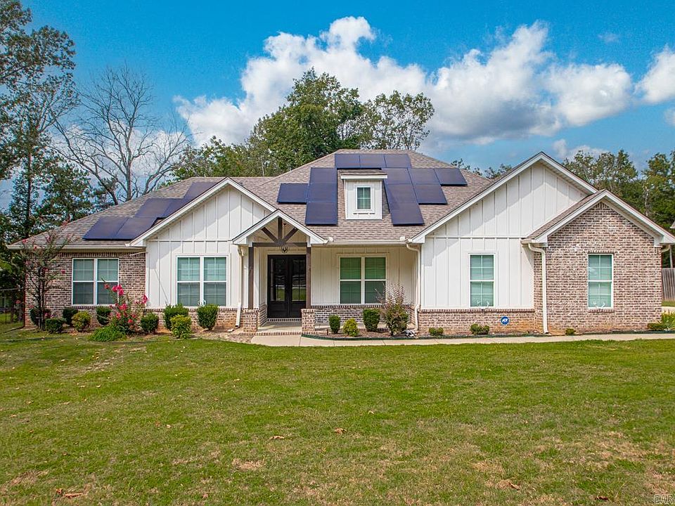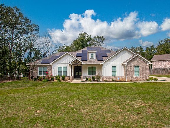 The one everyone has been asking for. Not too far out! Country feel. Over an Acre! No restrictions! Corner style Lot! This 4 bed 2 1/2 bath home has it all. Walk thru the front door to an open living, kitchen, dining room. Today's style kitchen featuring quartz counter tops. Wall oven with an electric surface range. A huge pantry to top the kitchen off. The half bath sits just off the kitchen/living area. Plenty of closet space in the primary suite. On the other side of the home are the three spare/guest rooms. The living room features a wood burning fireplace and wood beams traverse the ceiling. Outside you'll find a covered back patio with a chain link fenced back yard. Plenty of space on the lot to build your dream shop. The home includes solar panels at no cost to the new home owner! Schedule your showing to see this one today.
