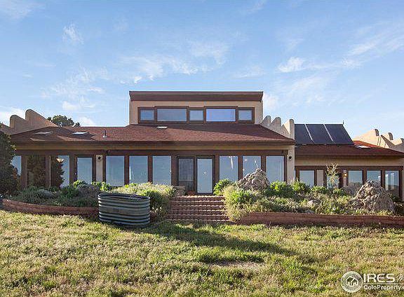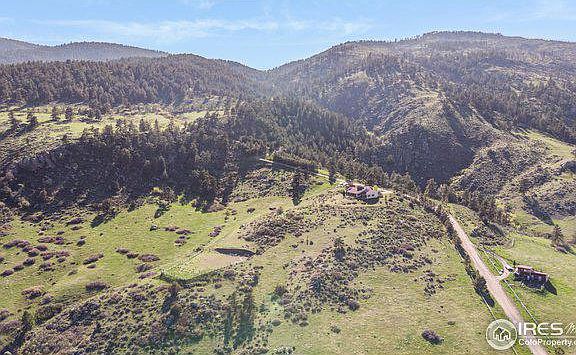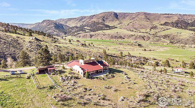 A slice of Colorado Heaven! Passive solar open floor plan w/ vaulted ceilings, Saltillo tile floors and FANASTIC views down the valley and the west side of Horsetooth rock. Master w/ oak floors, slider access to private court yard, hot tub room, walk-in closet, 3/4 bath with upgraded title + slab granite vanity, grow your herbs and year around tomatoes in the sunroom, Finnish fireplace, loft with oak floors and spectacular views of red rock cliffs. There is a live stream and forest behind the house and barn, most of the land is rolling meadows and pasture. Oversized 3 car garage, Lofting shed, Arena Barn with 3 box stalls and runs, see additional docs for more detail. The home needs some TLC and is dated... it is priced accordingly!