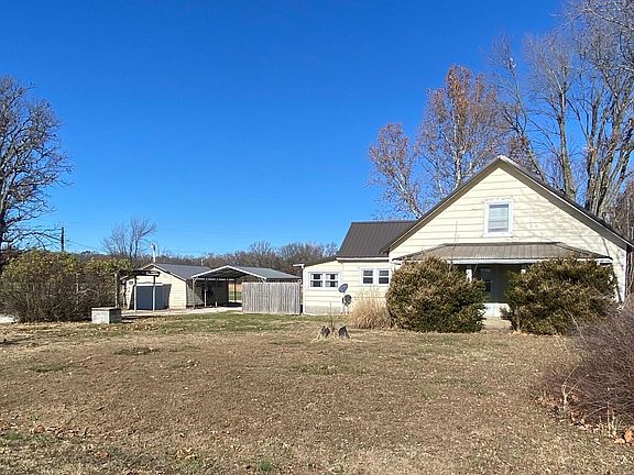 10 acre Ozark playground complete with tire swing! Build in the woods on the back while living in the original 2 bedroom farmhouse with covered front porch and 28x17 unheated/cooled attic space OR update the siding and interior and enjoy budget-friendly country living. Concrete patio off mud room perfect for grilling. Country kitchen has island, bar and stainless steel side-by-side refrigerator and electric range. Laundry room includes washer and dryer. Metal roof new approximately 2 years ago. Gas space heater, electric wall heater and two window air conditioners. Leased propane tank.