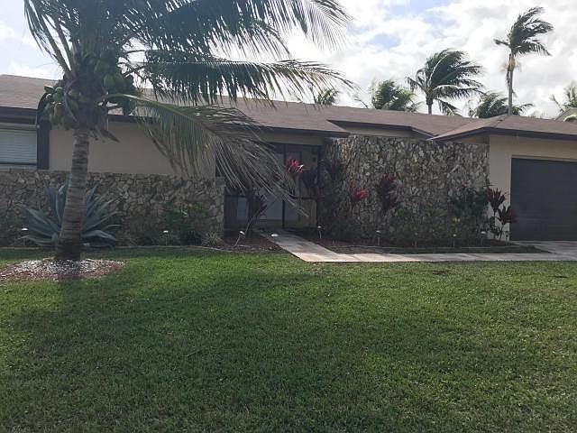 Beautifully Renovated West Boca Raton Pool home with 4 bedrooms, 2 bathrooms. This large home features vaulted ceilings, eat in kitchen, dining room and living room. The home features a brand new elegant kitchen with new stainless steel appliances, granite countertops and a large island. A spacious covered porch overlooks a free form pool, with large fenced in backyard and outdoor shower. Plenty of storage in the home with lots of large closets. The home is energy efficient with new AC and duct work and the sprinklers are on a well for low water bills. Both bathrooms have been updated with granite countertops and elegant shower surrounds. Courtesy of Regency Realty Services