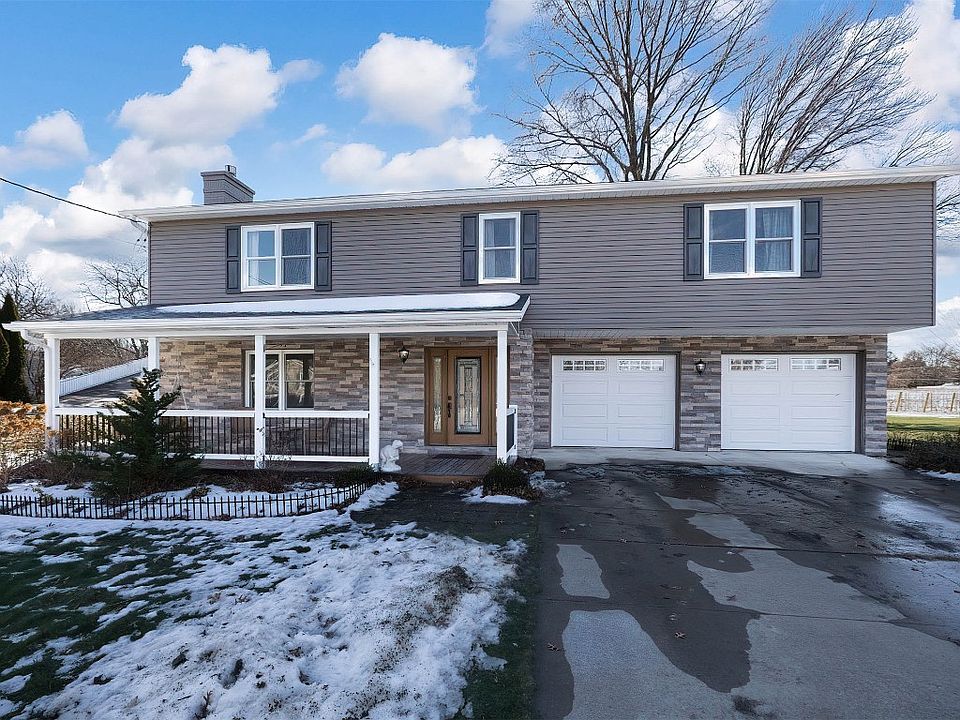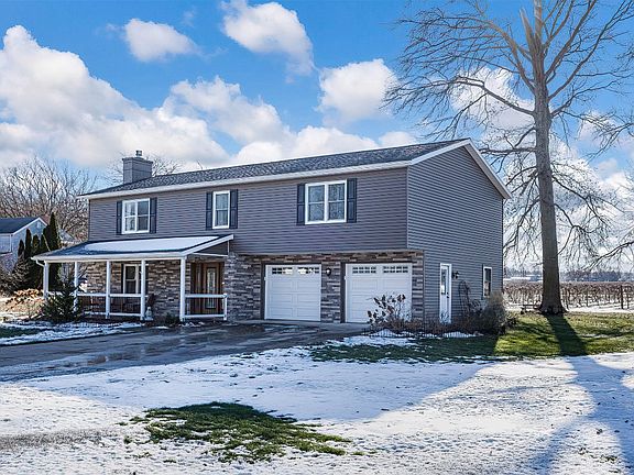 Country chic raised ranch set against a backdrop of rolling vineyard views! Warm and welcoming interior offers flexible living space to suit any buyer need. Main level features a spacious living room with custom designed built-ins and a sun-filled kitchen with tasteful upgrades and walk-out to your private deck. Home also incudes a primary bedroom with attached full bathroom, two generously-sized secondary bedrooms and main full bathroom. Walk in level features a comfortable family room with gas fireplace, convenient half bathroom and well-proportioned laundry room with private storage closets and walk-out to the backyard. Also features an integrated two car garage with room to spare. Enjoy open skies and eclectic views from your private deck - perfect for leisure time! Located seconds away from the Lake Erie shoreline and local schools, this move-in ready home is perfect for those looking for a country home close to local amenities.