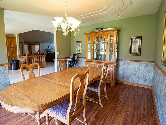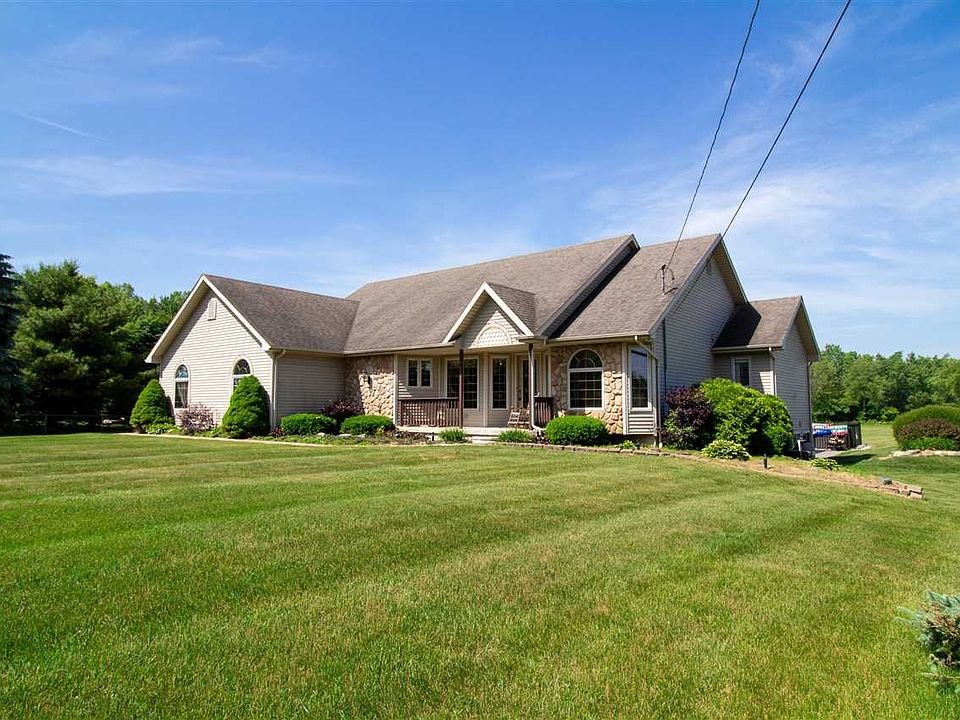 Over 3600 finished sq ft!! 4+ bedrooms, 3 bathrooms, and 40x40 pole barn! The entry level features a firelit great room with vaulted ceilings, spacious kitchen with solid-surface counters, breakfast nook, formal dining room, laundry room with counterspace and abundant storage, two bedrooms including the master suite, and a half bath. The master suite has a private full bath with large vanity space and walk-in closet. On the lower level, the family room space features a wet bar with seating, gas fireplace, and daylight windows. Two additional bedrooms, cedar workout room, full bathroom, and unfinished storage space finish out the lower level. Access the deck, poured concrete patio area, and in-ground salt-water pool from the entry level great room or from the basement walk-out. Park in the attached 2 car garage and store lawn equipment and tools in the 40x40 pole barn with walk-up loft, 110V & 220V electrical, and furnace hookup (furnace is there, but not installed). Additional noteworthy features include interior central vacuum, all interior appliances included in the sale, outdoor lawn sprinkler system, and underground electric fence. Move in worry-free, as the seller is including a one-year home warranty for the purchaser!