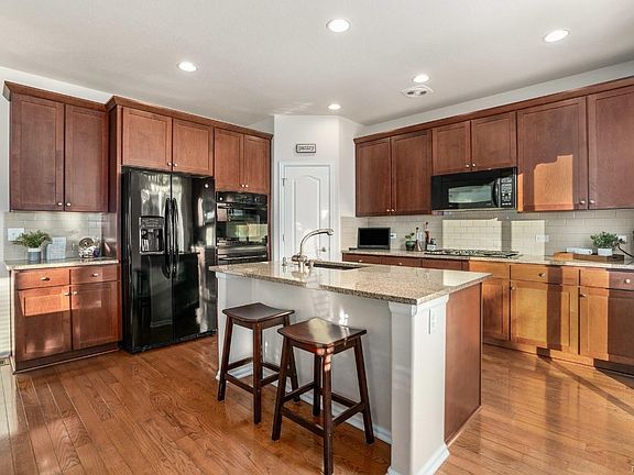 This desirable ranch-style home w/ an open, flowing floor plan is sure to complement the lifestyle you've been seeking! Gather w/ friends & family in the spacious kitchen featuring a center island with seating for two, black GE Profile appliances including gas cooktop & double oven, eat-in area, pantry, ample cabinetry topped w/ slab granite & accented by a subway tile backsplash. An adjoining flex room is perfect for more formal dinners, or use it as an office to work from home, while natural light shines into the family room boasting a gas fireplace w/ tile surround. After a long day, retire to your main-floor master suite that includes a 5-piece bathroom & sizable walk-in closet. Three additional bedrooms ensure enough room for a growing family & overnight guests. Entertaining is made easy in the finished basement, featuring a huge flex space ideal for games, media and exercise. Enjoy great Colorado weather from your low-maintenance backyard w/ expansive patio & custom firepit area!