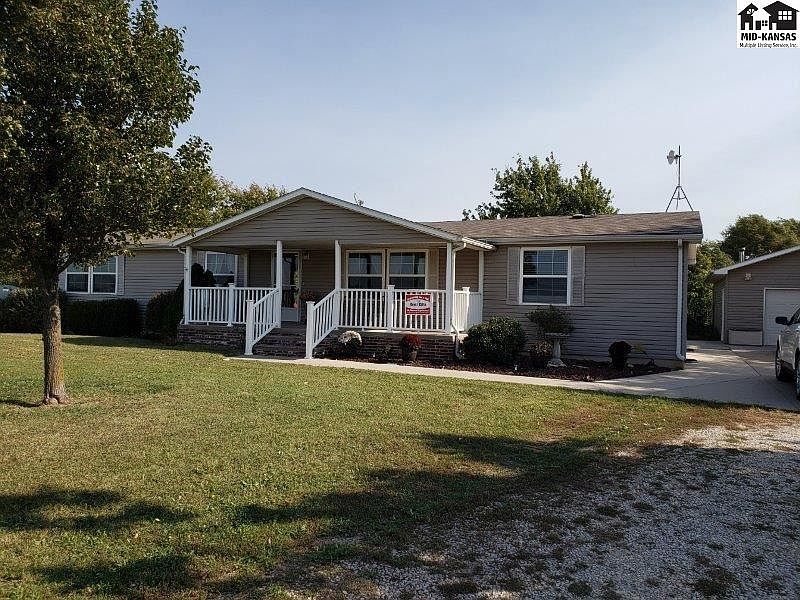 What a beautiful way to enjoy sunrises and sunsets! This home is situated just south of McPherson and includes almost 3 acres. Plenty of room for a family to play and live in the country. This home offers 3 bedrooms and 2 baths on the main floor. Open concept floor plan has a formal living room and dining room, eating bar and a breakfast nook. The basement offers plenty of storage, a rough-in for another bath, game room/tv room and two bonus rooms. Outside there is a covered front porch, a large deck in the back, an oversized two car garage and wide open spaces to play.