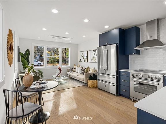 Sophisticated new construction in Green Lake. Developed by local niche builder, this modern craftsman has tasteful finishes throughout. South facing home captures mountain views and tons of natural light. Features include custom cabinetry from Abodian, quartz slab countertops, and wide plank engineered hardwood floors. This home is targeting 4-Star Built Green which includes dedicated parking pad with EV-outlet and pre-wiring for solar. Just a short 5-min walk to all the amenities of Green Lake, and a brisk 30-min walk to both Northgate & Roosevelt light rail stations.