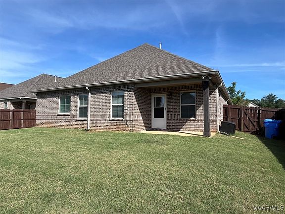 Built in 2018, this beautiful 4 bedroom / 2.5 bath home located in The Ridge at Pratt Farms (Prattville). Currently occupied through May 31, 2025. AVAILABLE June 1, 2025. This floor plan features a refined foyer leading into a cozy, Great Room that flows into a well appointed kitchen and rear Dining area. The Great Room features a trey ceiling, ceiling fan and gas log fireplace. The kitchen includes granite countertops, stainless steel appliances and a large work island. The Main suite is located in the rear off of the kitchen area while the three guest bedrooms are located off of the Great Room with a centrally located utility room and guest bathroom. The main quarters provides a large bedroom with a trey ceiling and a walk in closet as well as a luxurious bathroom complete with a double vanity, garden/soaking tub, and tiled shower with glass door. Hardwood floors are featured in the main living areas and hallway with carpet in the bedrooms. A staircase loaded in the foyer leads to a bonus room located above the garage. This room features a large space and a half bathroom. Relax and enjoy the fenced back yard and covered patio area.