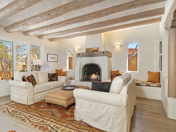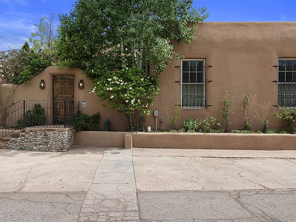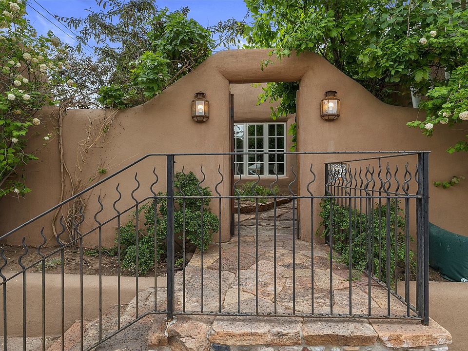 Charming and elegant Canyon Rd property. This Adobe residence is a 2 bedroom 2 bathroom (with upstairs den that current owner uses as a 3rd bedroom) featuring high ceilings with vigas. Exquisite entry courtyard with mature aspens and fireplace. Upstairs deck with hot tub and mountain views. Great floor plan with single level living on main floor. Lovely kitchen and bathrooms, central A/C and mini-split cooling, fully landscaped with beautiful pots and flower beds and all on drip irrigation. Excellent 2 car off street parking and all the Santa Fe charm of an old world adobe home... and of course all the walkability to all things Canyon Rd and Santa Fe.