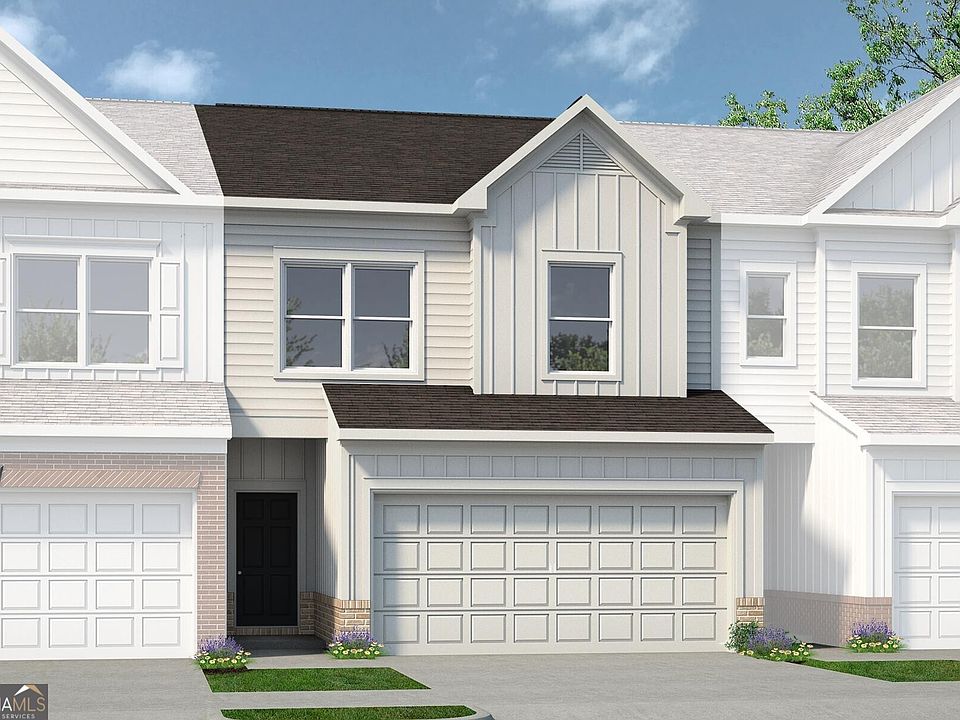 The Maddux II floorplan located in Smith Douglas Homes, Ellison Square community. Fantastic Sugar Hill location! Now Pre-Selling!! This townhome offers you luxury living at an affordable price. A welcoming foyer with vinyl plank flooring throughout the main floor provides seamless transition from room to room. Entertain guests in the spacious family room that's open to the kitchen. The spacious kitchen has a center island, granite countertops, tile backsplash, is complete with upgraded cabinetry and an upgraded appliance package. The kitchen located in the rear of the home, provides convenient access to a covered patio. An oversized staircase adorned with open iron rails leads upstairs to the two secondary bedrooms and primary suite with a tray ceiling. The primary bath has a a tiled shower with bench seating and a double vanity. Nine foot ceiling heights on both levels. Lawn maintenance is included in your HOA leaving more time for you! Photos representative of plan not of actual home being built. Ask about our Seller incentive with use of preferred lender. Home has an estimated completion of July 2024!