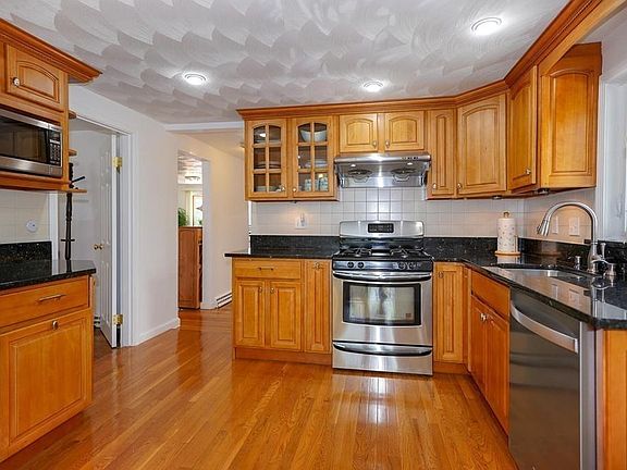 Absolutely TURNKEY! Completely renovated inside and out within last 5 years. This impeccable home features an attractive kitchen with Stainless appliances, handsome granite countertops and upgraded cabinetry open to a newer, versatile, sun-filled 16'x15' addition with cathedral ceiling and three windowed walls. A convenient 1st floor bedroom with adjacent, updated bath with jetted tub can be found on the main level, as well as a fireplaced living room. Two crisp upstairs bedrooms share a spacious shower bath with modern vanity. The light and bright, finished lower level offers space for recreation, exercise, laundry and storage. (See Floorplan). There's gleaming hardwood throughout the 1st and 2nd floor, many replacement windows, central air and a young roof. The location is perfect with a park, playground & tennis courts across the street, bus stop by your front door and shopping, restaurants, the Eliot T station and Rtes 9 and 128 closeby. Move-in ready for some lucky new homeowner!