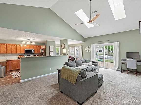 Perfectly updated 3 bedroom/2.5 bathroom home in Beavercreek schools! This charming, freshly painted, tri-level home will WOW you upon stepping foot in the open and airy entry. The great room offers vaulted ceilings, and skylights which flood the home in natural light. Off of the great room is a designated dining room, which conveniently flows into the kitchen. Kitchen comes complete with SS appliances, modern backsplash, bar seating and tons of counter space.... there is also an oversized pantry! Upstairs there are 3 large bedrooms (with new ceiling fans), including the primary suite. Primary suite features a walk-in closet, with a new closet system; as well as a private bathroom with dual sink vanity and new toilet. The lower level of this home offers a HUGE rec room, additional 1/2 bathroom and separate designated laundry space. The new patio sliding door will lead you out to the charming paver patio, which overlooks the open, fully fenced yard. For added peace of mind, a radon mitigation system was installed in 2021. The only thing this home is missing, is you!