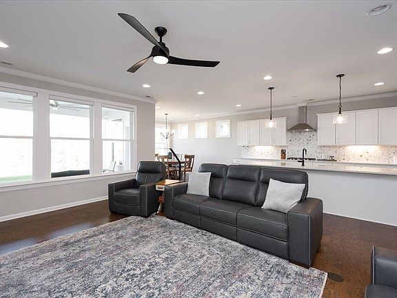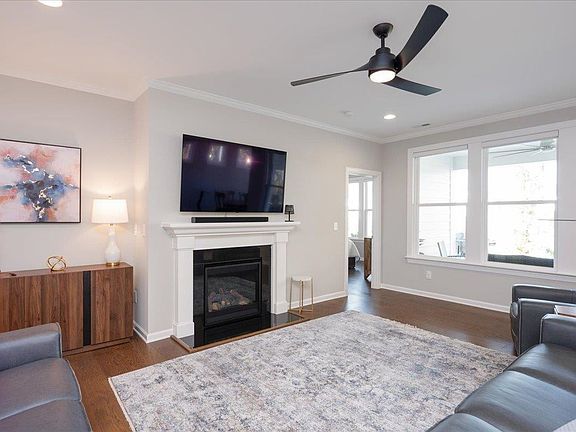 Gorgeous open and airy one level living in exclusive 55+ community, Corbinton at Kildaire Farm. Less than 1yr old home lives better than new. Tons of sunlight, extended kitchen island, hardwoods throughout, zero entry shower in master, massive closet and pantry, custom blinds (automated on rear of home), covered porch, fireplace in living room, drop zone, large laundry, tankless H2O, and fixed gasoline for grill. This home has it all! One of the best lots in the neighborhood overlooking natural trees and greenery. Truly a lock and leave home, minimal utilities, HOA covers all yard work. Neighborhood features a community fire-it and gazebo. Do not miss this opportunity. Priced to sell