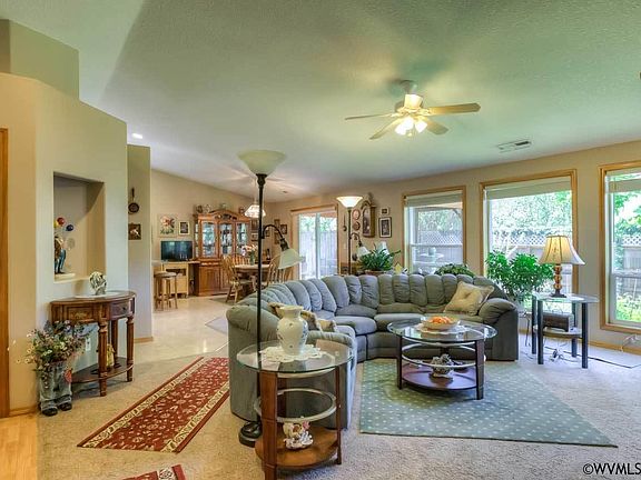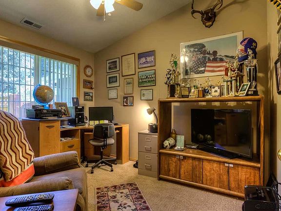 Accepted Offer with Contingencies. Get ready for the sun and outdoor living! This home boasts a beautiful landscape, is fully fenced with new fencing, has 5 raised beds, 6 fruit trees, a new 8x12. Garden shed for tools and lawn mower and a new covered back deck for entertaining, room to park RV. The main living space is open, vaulted has 3 viewing windows letting in lots of daylight. Move in ready with appliances included, neutral interior paint and well maintained carpet. Ceiling fans throughout. Private location off the street.
