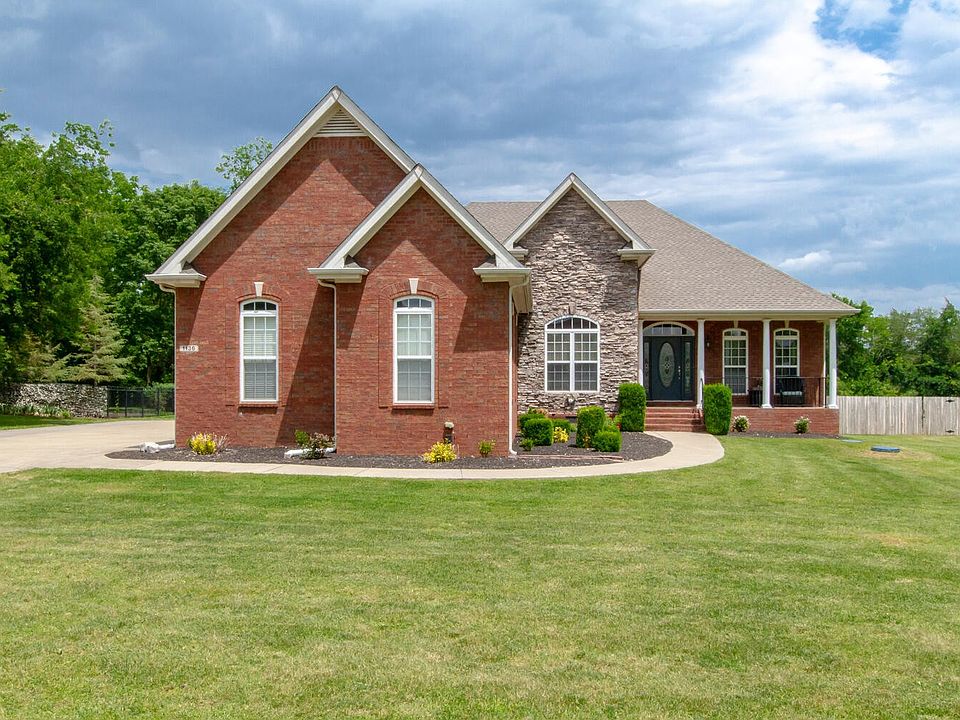 Stunning all brick with stone accents one level home in Farmington Subdivision! This beautifully remodeled home sits on .93 acres that backs up to farmland! Done in 2022 including 3 new custom tiled walk-in showers with stone accents and primary wet room that you will love!! This spacious home features soaring ceilings throughout, hardwood flooring, tile, fireplace, double kitchen cabinets (with library system), stainless appliances, stone kitchen backsplash, office, laundry room. 3 car side-attached garage with storm shelter. New roof added March 2023. Let’s not forget the rocking chair back porch where you can enjoy some peace and quite! Backyard has a 6ft privacy fence. Country Living at its best and Just 6 miles to Murfreesboro!