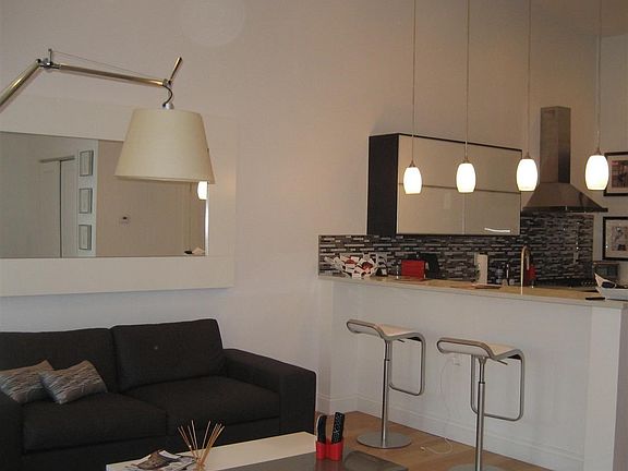 Large bright modern open layout 1bed./1bth penthouse in uptown brownstone. Great loc. Unit was fully renovated a few years ago. High end finishes include wide plank hardwood floors, quartz counter tops, stainless steel appliances with double door refrigerator with ice maker, separate cooktop and oven, Bosch D/W, microwave, W/D room, modern porcelain tiles in bath, efficient tankless water heater so that you never run out of hot water. Apt has high ceilings and CAC. Pkg available nearby for extra cost. Outdoor space. No pets allowed. Owner is a licensed real estate agent.