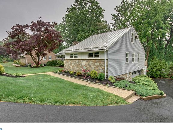 This unique 4 BR 3.5 Bath Narberth home presents a tremendous opportunity for a savvy buyer. The original floor plan adapts well to modern lifestyles. The lower level is expanded and finished to accommodate a multitude of uses. And the home boasts updated systems that will be reliable for years to come. From the well landscaped front yard you will enter the main level at the center hall. The very large living room is straight ahead with multiple windows stretching almost floor to ceiling. The living room is flooded with natural light and gives an open view of the deck. The living room also has a beautiful stone fireplace at one end. Past the Living room is the Breakfast room which is open to the kitchen and has another stone fire place giving it a country kitchen feel. The Sun room off the Breakfast room can be used year round and has an exit to the very spacious deck. The kitchen has a side door to the front of the house. The dining room has floor to ceiling windows too. So all the living space is bright and sunny. On the main level, there are 3 bedrooms, including the Main Bedroom with its own full bath and with sliding doors out to the deck. Two other bedrooms share a hall bath. One Bedroom is currently used as a library with built-in shelves but can easily convert back. The 4th Bedroom and another full bath are upstairs along with a cedar closet. The lower level really sets this house apart. It's a full daylight walk-out level with the back yard and with a separate entrance from the driveway side too. It's expanded to over 1600 square feet of finished space including multiple rooms, a gym, storage, and a powder room. Currently this space is used for 2 in home offices but the future use is almost unlimited; in-law suite, rec room, workshop, family room, or anything you can imagine. Plus there's a 2 car garage, an extremely durable metal roof, 2 HVAC systems, some additional electric baseboards, a whole house generator, and a home warranty that will be included with the sale.