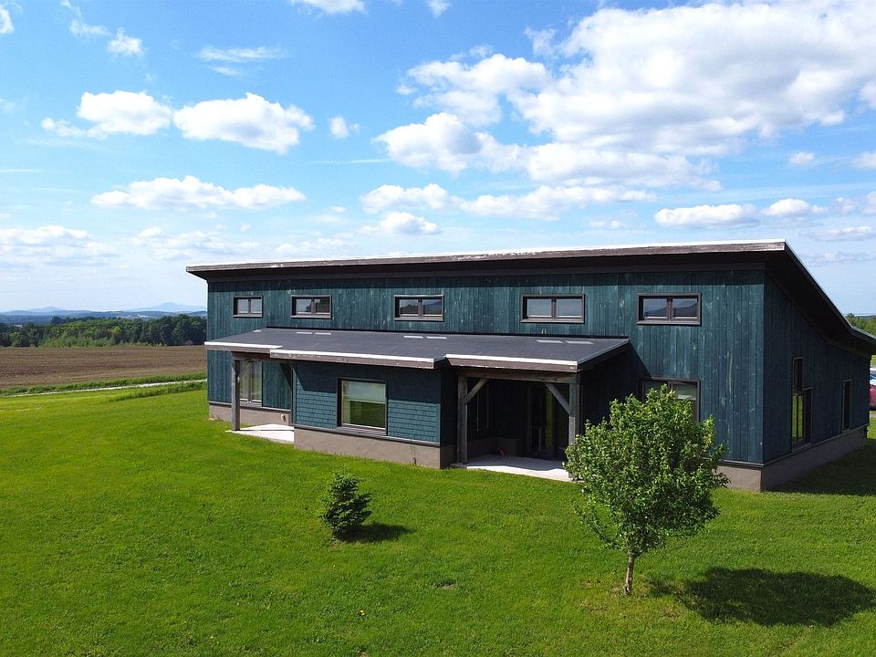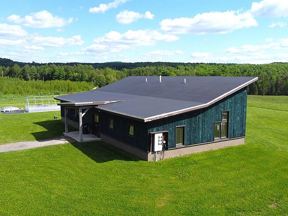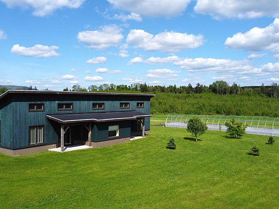 A truly one of a kind home situated on 7.7 open acres in Holland, VT. Originally constructed in 2012 and updated in 2021. The home is post and beam construction with straw bale and clay insulated walls providing a super energy efficient home. One level, 3 bedroom 2 baths and an open concept common area. Inside the home you will admire the gorgeous post beam country feel, the custom kitchen and love the natural sunlight thanks to the south facing wall of windows offering a passive solar gain. Outside either of the two sliding glass patio doors you will enjoy the nearly 360 degree view and the open lush garden space. In 2014 the home received a 5 star+ energy rating certificate from Efficiency Vermont. The home is heated by a propane boiler with radiant concrete stained floors. The VAST and VASA trails are easily accessed from the proeprty . Holland Pond and Lake Seymour are both a short drive away. Also included is a greenhouse hoop shelter and a chicken coop with a fenced in run area. If you're looking for that place like no other, yet super minimal maintenance, this is the home you've been looking for. Take a look today!