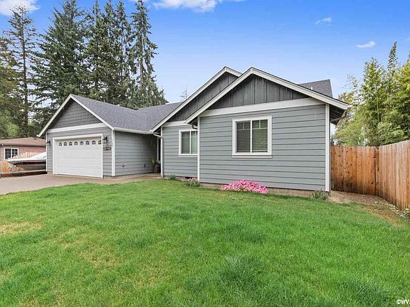 Accepted Offer with Contingencies. Beautiful 1-yr old 3BR/2BA home on a dead-end street centrally located in Sweet Home. 1-story home w/open floor plan, AC, gas fireplace, vaulted ceilings, SS appliances, fenced yard, covered patios, 2-car garage + above garage finished attic storage space. Master suite includes walk-in closet, double sink vanity and walk-in shower.