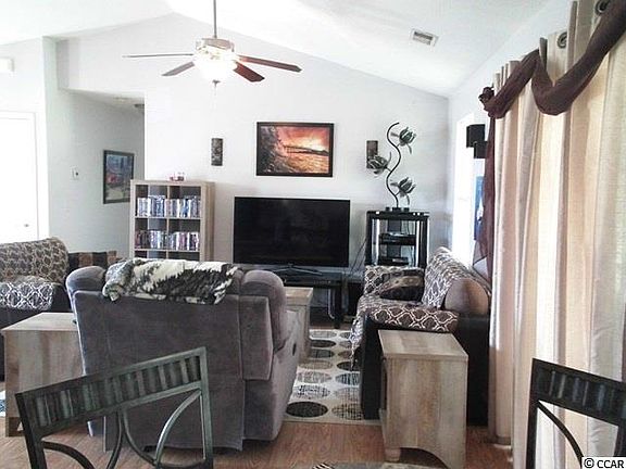 This 3 bedroom 2 bath home features laminate wood floors in the living room and hallway, carpet in the bedrooms, tray ceilings in the master bedroom, and two car attached garage. Great yard that backs up to woods. Tucked away in a charming neighborhood and only miles from Murrells Inlets great marsh walk, restaurants and shopping. In the sought after St James school district.