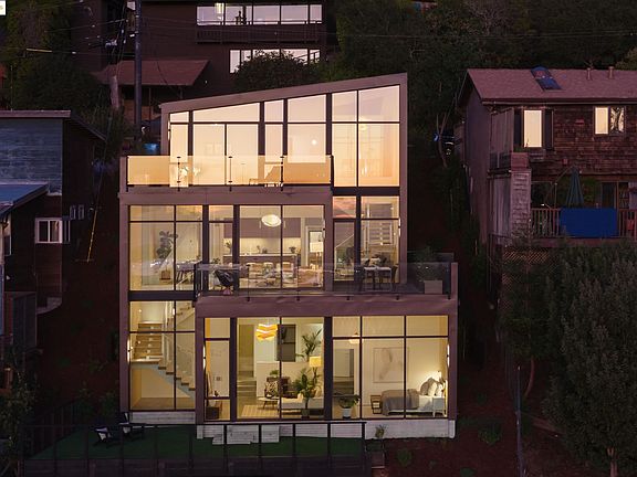 Fold House, the latest creation from award winning-women architect-duo, Artifact Collaborative- a new construction home dramatically situated in the lower Berkeley Hills. Every west-facing window & door frames an unparalleled 180-degree view of San Francisco & the Golden Gate Bridge, offering a daily spectacle you won't find anywhere else. The home's name is derived from its central design motif: the dynamic articulation of planes that create interlocking volumes. This concept is expressed internally by two-story floating staircases that create vertical sculptures, while the unique creased roofline peels upward to capture light through a triangulated clerestory window, bathing the interiors with natural light. A home designed to both inspire & endure. Beyond its dramatic aesthetics, Fold House offers an uncompromising modern lifestyle defined by sustainability & resilience. This all-electric home is engineered for the future, featuring a solar PV system w/ battery, high-efficiency heat pumps for year-round comfort & an EV charger. Built from the ground up to the latest standards, it features seismic-resistant foundations (pier and grade beam/mat slab) & fire-hardened construction with durable standing seam metal and plaster and a fire sprinkler system