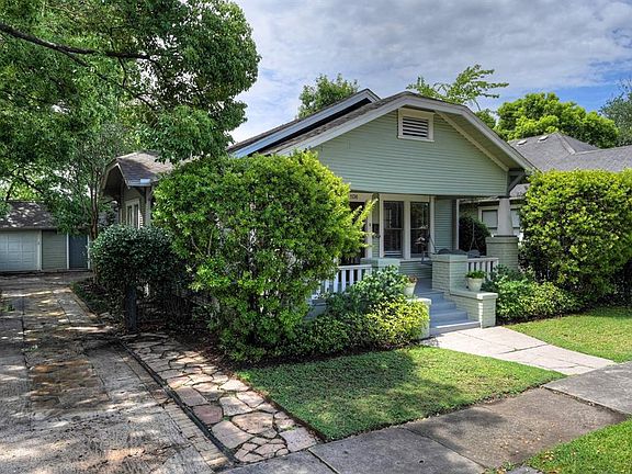 Classic Craftsman bungalow lovingly updated and well maintained, in historic deed-restricted North Norhill in the Heights - one of the most well-preserved bungalow neighborhoods in Houston. Balustrade porch with swing leads into wide living room where the focal point is an imported late-Victorian fireplace, surrounded by built-in bookshelves and mantel with mirror. Open kitchen, including rebuilt cabinets with crown molding, six-burner stove, porcelain tile counters, breakfast bar. Oak floors and freshly refinished Saltillo/terracotta tile. Picture rail molding throughout. Gated, entry to one-car garage and utility room. Fresh interior and exterior paint, updated wiring, recent gas lines, recent water heater & dishwasher. Automatic sprinklers. Walking distance to galleries, restaurants, bakeries, cafés, groceries, Proctor Plaza park (playground, tennis courts); five-minute ride to Heights bike trail.