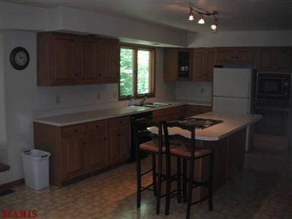 Spacious and open 1.5 story home on a beautiful setting. 4 bedrooms, 3.5 bathrooms on .5 acre. Step into the entry foyer with wood floors, off to the left is the living room adjoined to the great room, off to the right is the formal dining room. Woodburning fireplace in the great room, bay window, crown molding, ceiling fans, and 6 panel doors throughout. Kitchen has a new gas stove on center island, secretary desk, pantry, and plenty of cabinets. All appliances including washer & dryer, and refrigerator stay. Main floor laundry Upper level includes master bedroom suite with walk in closet, updated bathroom, and separate tub & shower. 2nd bedroom has a walk in closet also. Partially finished lower level has 4th bedroom, family room, full bath, storage space, rough in fireplace, and rough in to put a wetbar. Deck overlooking trees & woods.