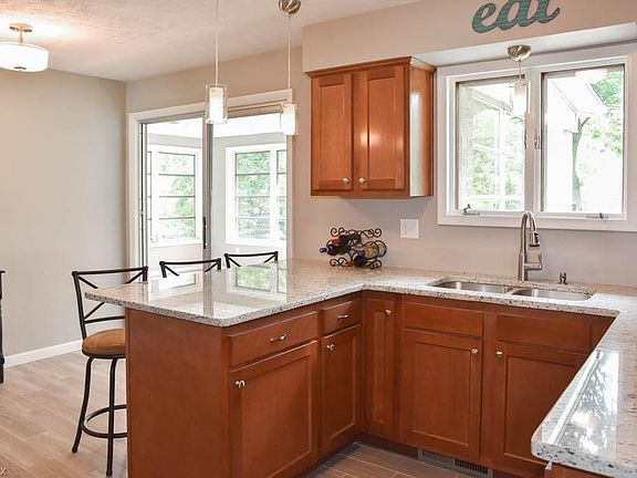Wonderfully remodeled 3 bedroom, 2 full bath all brick ranch with a finished lower level in Perry! Home has already been inspected for buyer's peace of mind. New flooring and fresh paint throughout! The spacious, sun-filled living room features a large picture window and deep coat closet. Prepare your favorite dishes in the beautiful eat-in kitchen updated with granite countertops, a breakfast bar, stainless steel appliances, new cabinets and tile flooring. Sliding glass doors lead to the huge sun room with gorgeous views of your private backyard. Down the hall, there are 3 nicely sized bedrooms and a lovely full bath with granite countertops, new fixtures, tile flooring and ceramic tile shower surround. Enjoy extra living space on the finished lower level! There's a rec room with recessed lighting, a new full bath and a huge 39x12, freshly painted storage room with laundry. 1-car attached garage with new opener. Private backyard with a fire pit! Come see all this home has to offer!