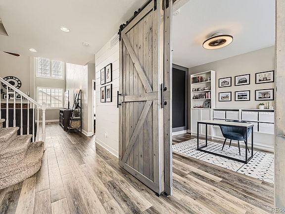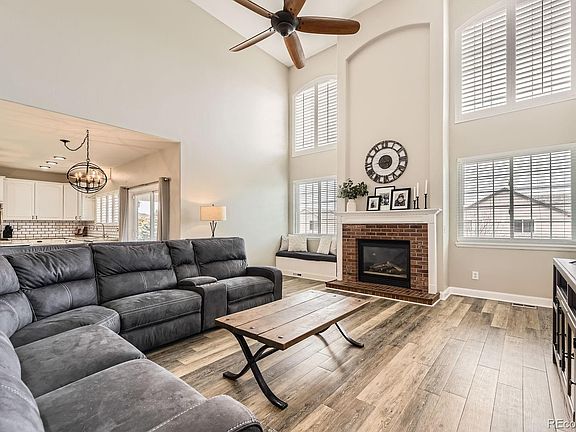 Welcome to this stunning 5-Bed, 4-Bath, 4,200 SF home in the highly desirable Founders Village neighborhood. This spacious residence offers a perfect blend of comfort, style, and functionality, complete with a 3-car garage and a walkout basement that’s perfect for entertaining. The open-concept main level is designed for modern living, featuring two offices, a formal dining room, and a grand family room with a gas fireplace. The large eat-in kitchen boasts elegant granite countertops, stainless steel appliances, and ample space for family gatherings. Sliding doors off the kitchen lead to a covered Trex deck, ideal for relaxing or dining while enjoying the serene views of your expansive, low-maintenance, water conserving synthetic turf yard. Below, you'll find an additional covered deck with pavers, a fire pit, and a hot tub (included), perfect for year-round enjoyment. The second floor is home to a huge primary suite with a luxurious 5-piece bath and a large walk-in closet. Three generously sized secondary bedrooms share a full bathroom, and the convenient laundry room (with washer and dryer included) is also located on this level. The expansive finished walkout basement is a true highlight, offering two sliding doors, a wet bar, a 5th bedroom, and a full bath – perfect for hosting guests or enjoying movie nights. A large storage room completes this space, providing plenty of room for all your needs. This home is loaded with custom features, including plantation shutters, a barn door, a wine fridge, and shiplap accents throughout. Additional amenities include solar panels, offering energy efficiency and sustainability. Nestled in a fantastic neighborhood, this home provides a perfect setting for your family. Don’t miss out on the opportunity to own this exquisite property at a great price!