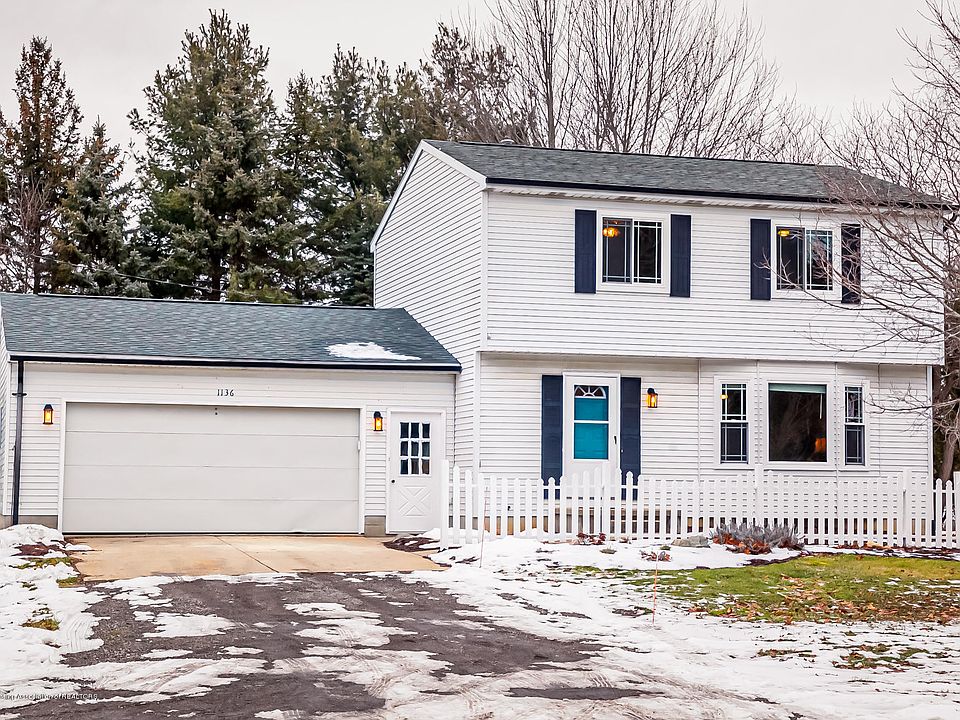 Stately two-story home positioned on 2 tree-lined, pastoral acres. Living room has a warm ambiance with expansive light-filled windows, gleaming flooring, and fresh neutral tones. Airy adjacent dining area offers convenient access to deck where you can experience all of the natural beauty surrounding this home. Modern farmhouse-style kitchen features ample crisp white cabinets, stainless appliances, and butcher-block counters. Quaint half bath is a Pinterest lovers dream, with antique vanity and retro lighting. Well designed upper level offers three spacious bedrooms and a peaceful, refreshed full bath. Lower level is roomy and ready for finishing to meet your needs. Ample storage space plus laundry with room for a hobby or rec area.