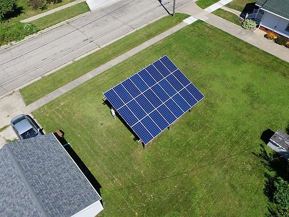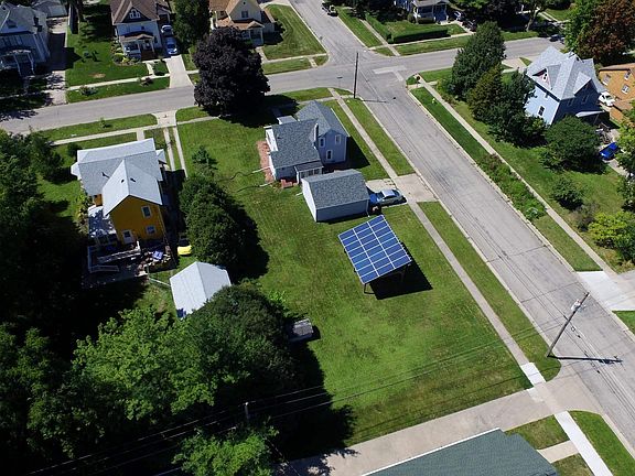 PRICE REDUCED! SUPER PRICE ON THIS HOME! CALL TODAY TO SET UP A SHOWING. FREE STANDING HUGE SOLAR ARRAY. Nicely updated 1 1/2 story home sits on a double corner lot close to schools and parks. Home has a large enclosed porch area as you enter the home. Formal dining is open to the kitchen. Spacious living room just off the dining area. Main floor updated full bath. Kitchen is cozy all appliances are included. Kitchen has access to the basement, back porch. Second floor has 3 bedrooms. Full basement has plenty of storage and laundry area. The double lot has a detached 2 car garage. Times are tough now. The solar array will help save you money on your power bill or put money in your pocket. You could have as low as $30.00 a month power bill.