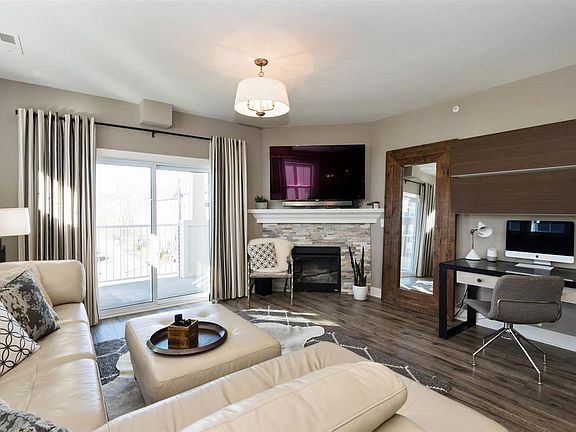 Absolutely stunning & upscale condo located in the desirable Peninsula neighborhood! You will love the open floor plan in this corner unit w/ lots of natural light & a large concrete balcony. Modern kitchen w/ quartz counters, stainless appliances & breakfast bar. Secure building with underground parking (with storage area), elevator, & 3 exercise rooms (cardio, weights & yoga). Conveniently located close to the dog park, wine bar/bistro & coffee shop. Plenty of additional exterior parking & on the busline!