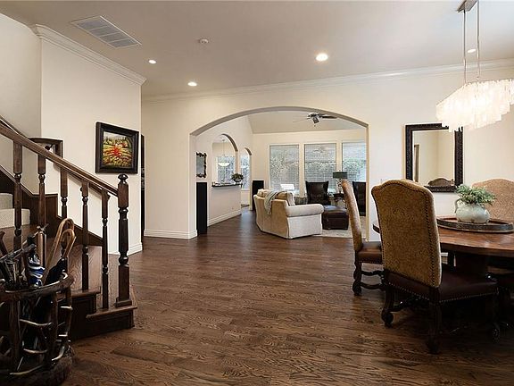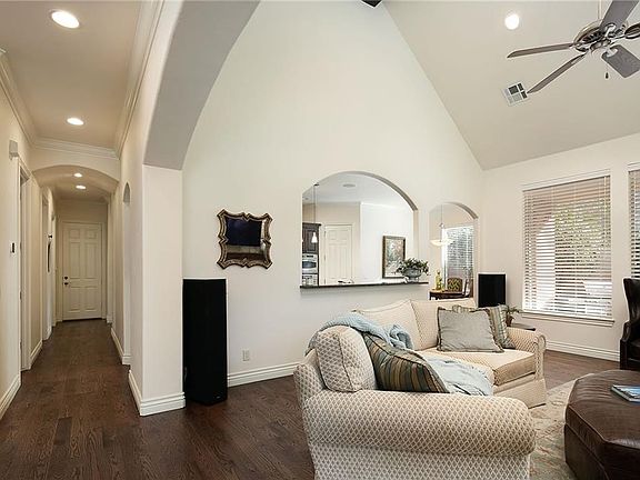 Exquisite home on the BEST LOT in the neighborhood! Coveted greenbelt lot, lush landscaping and exquisite details make this home the finest in its gated community. Inside, timeless beauty and custom details abound. From the arched passageways to the custom millwork, this home breathes luxury in every inch. Soaring cathedral ceilings in the living room & study create visual interest while the 2-story fireplace provides warmth and elegance. The gourmet kitchen, furnished with pendant lighting & world-class appliances, opens to the living room for a panoramic view. After dinner, catch up with work in your custom study, enjoy a movie in the theater room, or pamper yourself in the master bath. A jetted tub and a walk-in shower provide a relaxing spot to end the day. A Ground Zero storm shelter and an impact-resistant roof protect you from nature's fury. A community pool and fitness center help you stay fit. If luxury and location are a must, welcome home! Call now for your private showing.