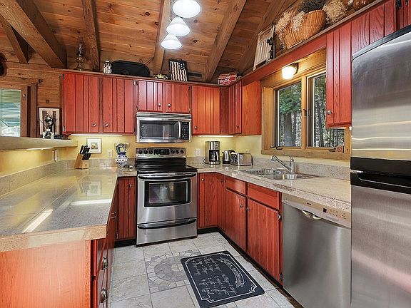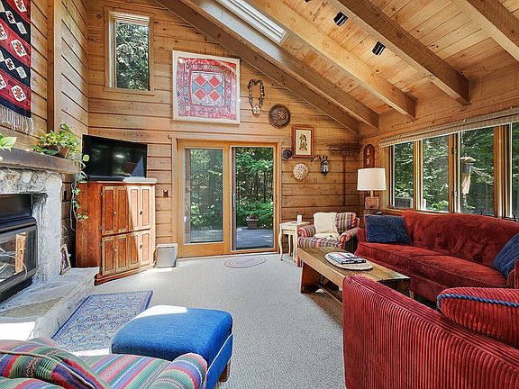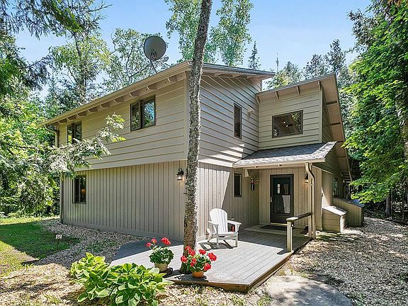 Simply lovely year-round home with deeded water access and access to the Rowleys Bay Resort between Ellison Bay and Sister Bay. Well-appointed and offered furnished, this home offers exposed beams, vaulted ceilings, sky lights, stainless appliances, granite counter-tops, radiant stone and tile heat in kitchen & sun room, plus a fireplace for chilly evenings. Sun room offers a wet bar and beautiful wooded views. Enjoy approximately 600' of common shore and a large pier, or relax off of your private patio. This is a must-see opportunity in a quiet area of the woods. Dues are $2,000 annually; this home is often rented and generates good rental income for the Seller. Make this your Door County getaway in the woods or your new year-round home.