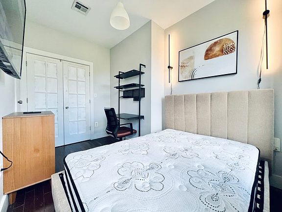 - Furnished room, 14ft ceiling duplex, tons of light, new hardwood floor, in a 5 bedroom, recently gut renovated apartment. - Trains: L at Dekalb Avenue Subway Station or M train at Central Ave subway station. - Furniture included: bed, mattress, closet, nightstand, curtains/shades, desk, chair, sofa, kitchen table. - On the same block as cafe's, restaurants, gym, bars. 1 minute walk to the best park in Bushwick (Maria Hernandez park). - Utilities: $160 per month (internet, gas, heat, hot water). - Monthly Cleaning: $30 per month. - Location: Willoughby Ave and Knickerbocker Ave. - There is a one-time room cleaning and administration cost of $175 Phone screening is required before accepting a booking request Quiet hours between 10 pm and 8 am Proof of income or large savings or a guarantor are required to stay over 3 months Docusign rental agreement is required with every booking