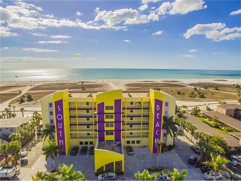 Take advantage of this opportunity own a Direct Beachfront, Income Producing Condo with spectacular views of Treasure Island's pristine sandy beaches, the Gulf of Mexico, and it's amazing sunsets from your spacious balcony. This fully furnished, turnkey unit features granite counter tops and tile flooring throughout, open kitchen & breakfast bar, crown molding, full size washer & dryer, and attractive décor. Monthly maintenance fees include ALL utilities including Electric. South Beach is a smaller 40 unit complex with impeccable landscaping, walking distance to dining, shopping, water sports, and nearby Johns Pass Village. It is a unique condo/hotel complex allowing unlimited short term rentals as well as owners can stay up to 350 days per year if you desire. A perfect beach retreat or investment opportunity. Grab Your Suitcase, Get Here & Enjoy!