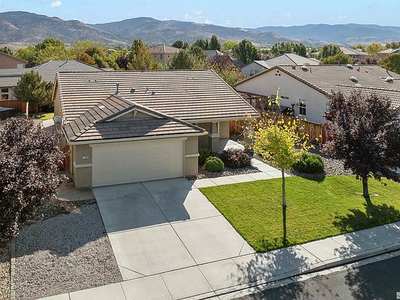 This single-story, quiet, Damonte Ranch neighborhood home features 3 bedrooms, 2 bathrooms, plus den/bonus room. The interior has a functional, open floor plan with many freshly painted rooms creating a welcoming atmosphere for all! A soft water system, custom, stamped concrete patio/walkway, and large, full-size TUFF Shed are just a few of the extras this home has to offer. A new garage door & automatic opener were recently installed. The front and backyard are beautifully landscaped with, automatic sprinklers and drip system. Home is located only a short drive from Lake Tahoe, Mt. Rose Ski Resort and Washoe Lake.