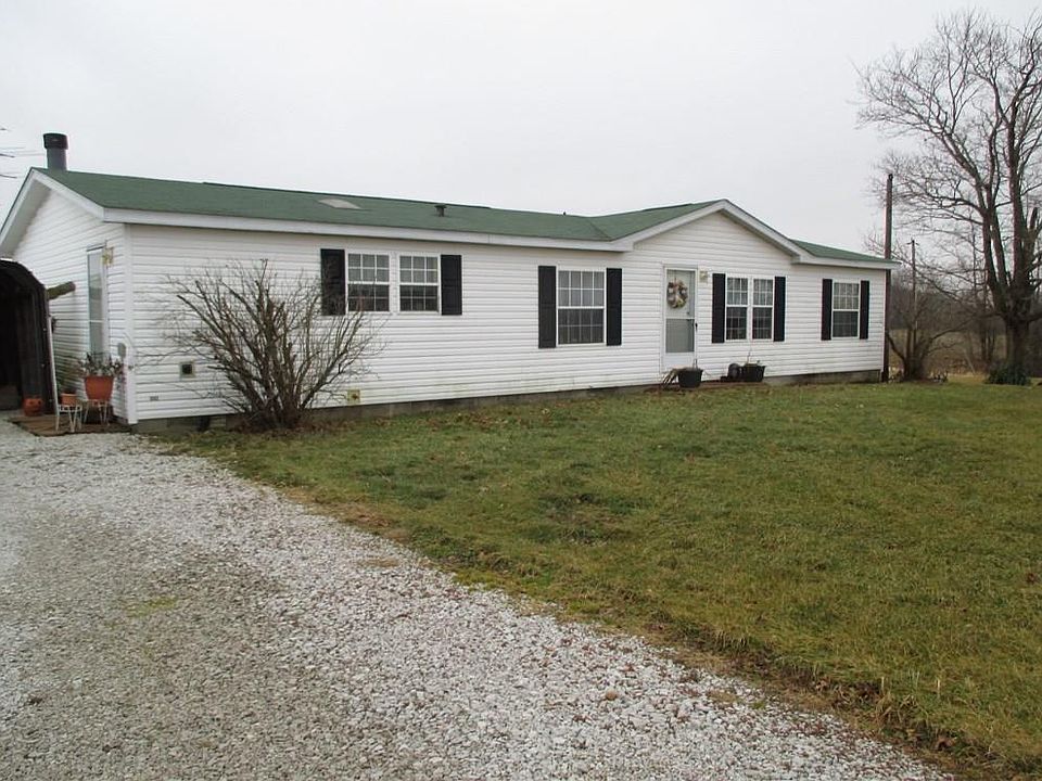 Manufactured home on 4 acres. 3BR/2 full baths with an open concept. Kitchen, laundry, LR, family room and DR. Roof is 3 yrs old. Back deck overlooks large pond. 40x80 pole barn with concrete floor. 3 storage sheds on property. Property is surrounded by open fields. Truly country living with easy access to I-70 & surrounding communities.